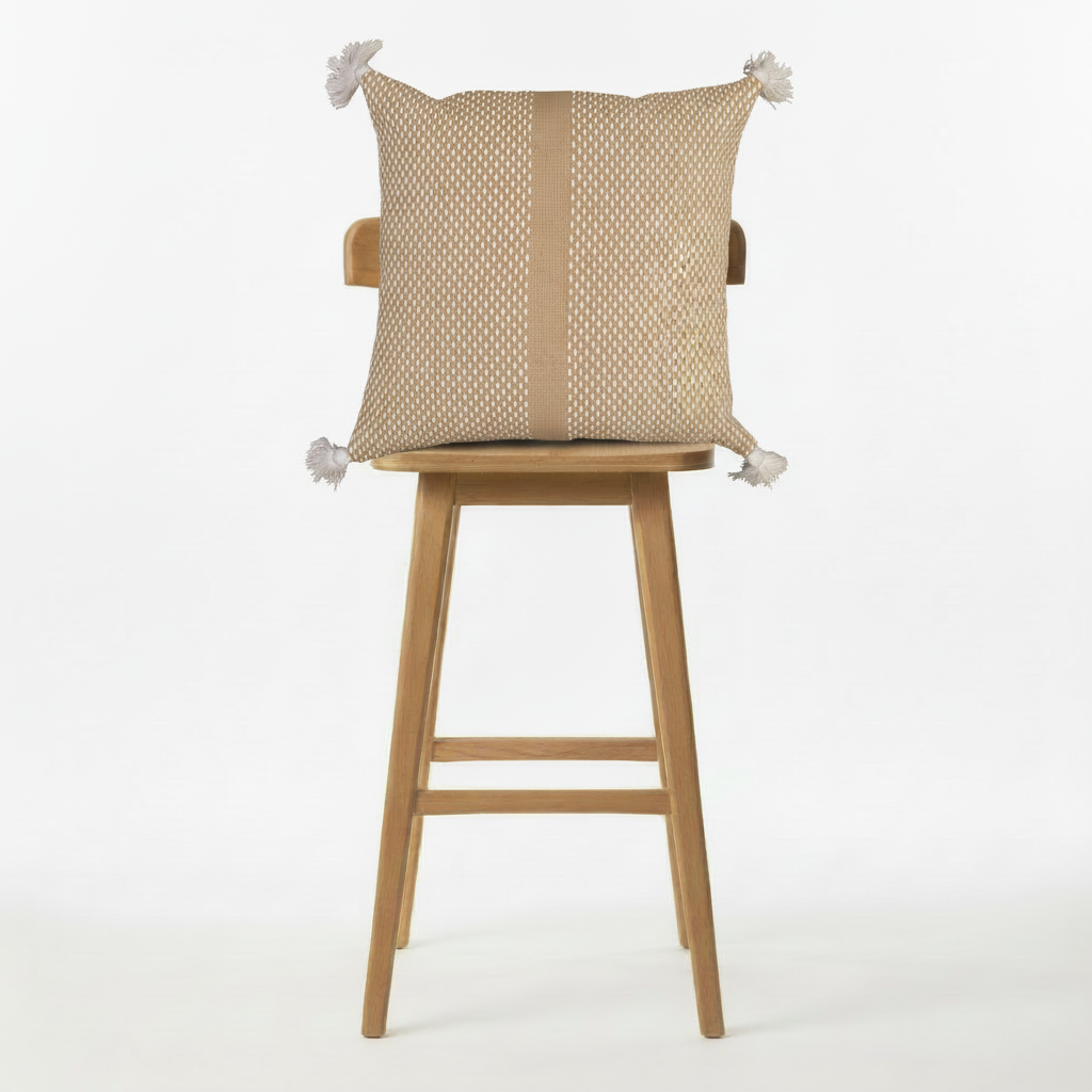 Hand woven scatter cushion cover 60 x 60cm - White Zen pattern on Stone