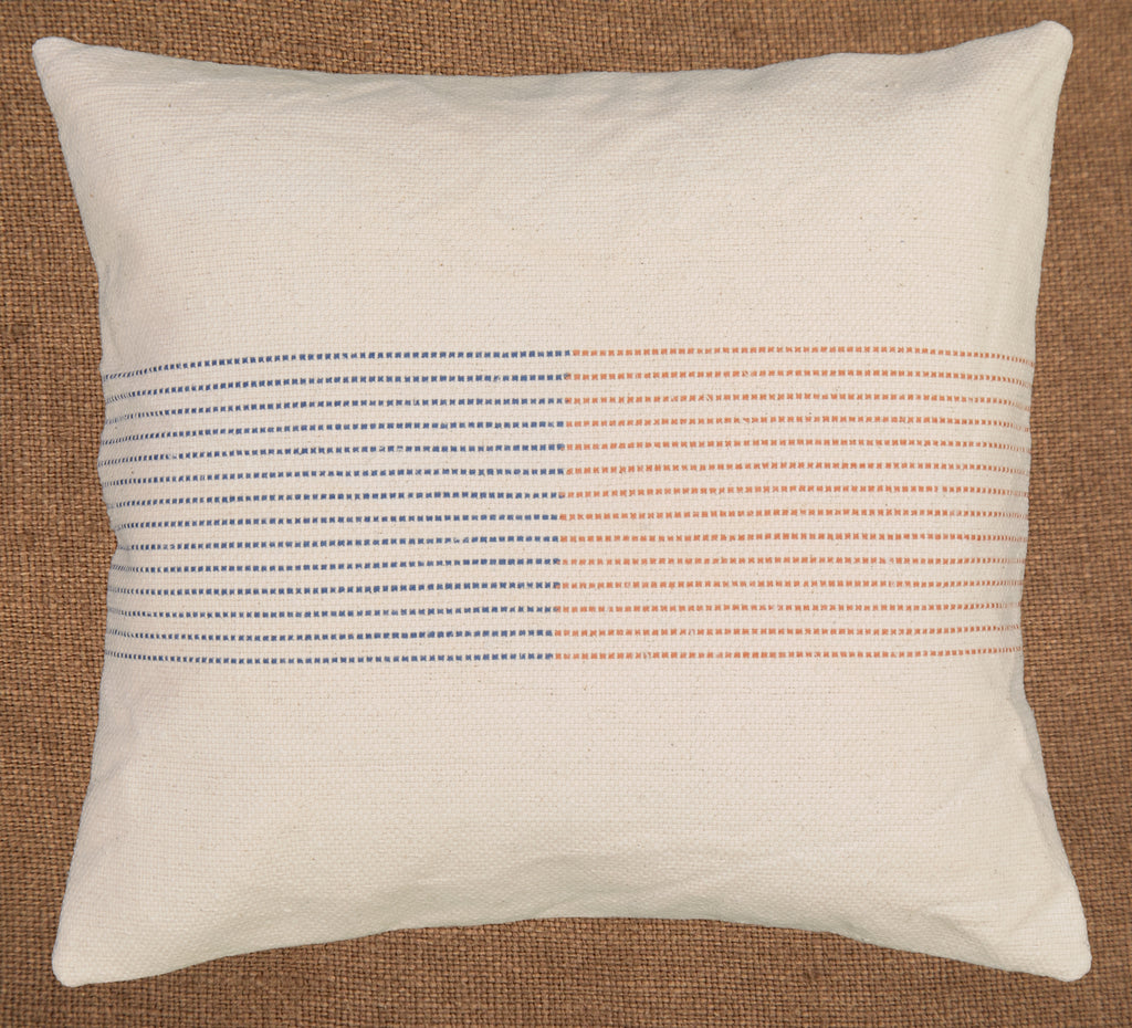 Hand woven cushion cover front with our Mixed colour stripes with a cotton fabric back including a YKK zip .